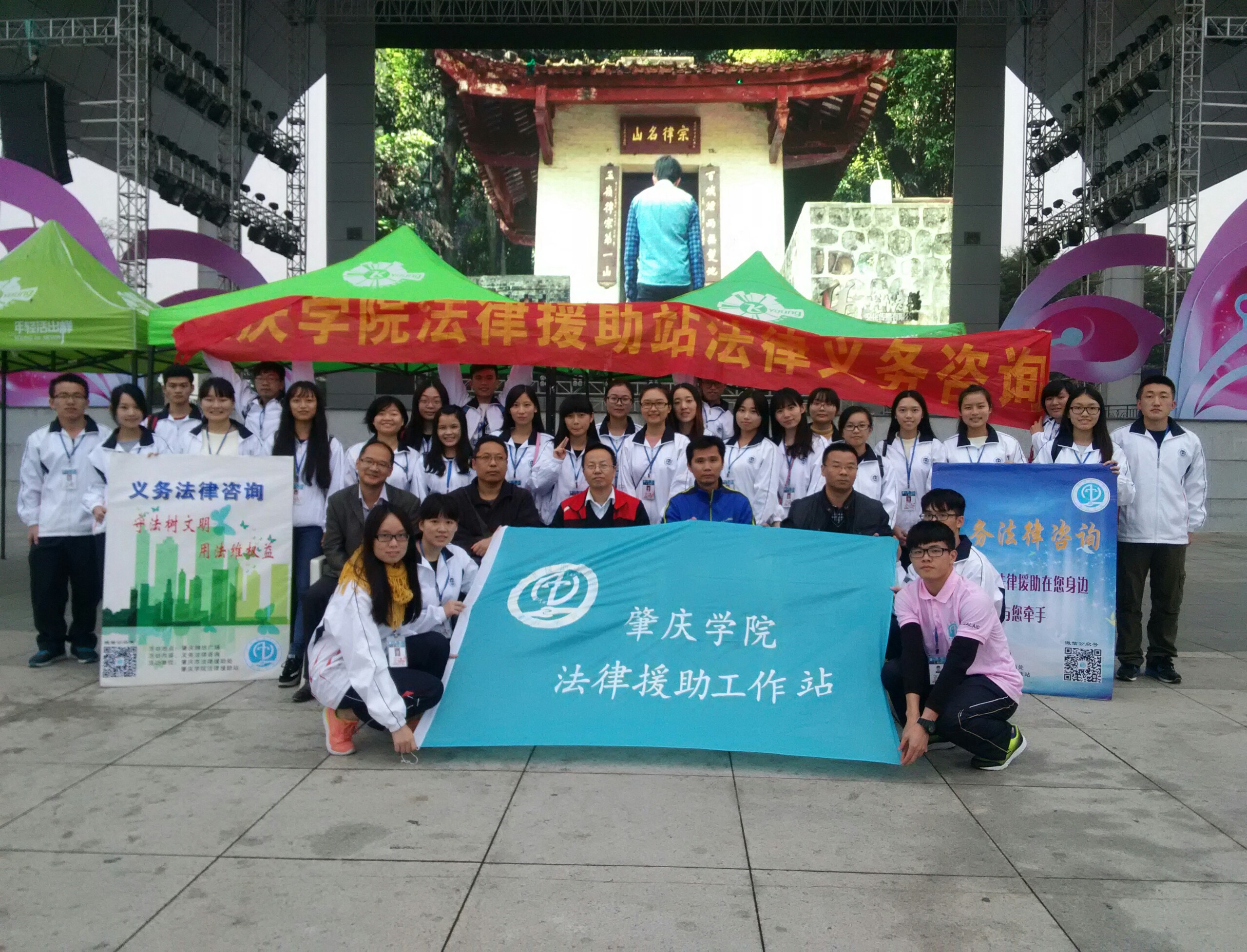 (本网讯 肇庆学院法援站宋泽鹏、赵雅雯)为了庆祝“12.4”第二个国家宪法日,推动法治社会进程,提高肇庆市民依法维权意识,肇庆学院法律援助站于2015年12月13日下午3时到6时在肇庆市区牌坊广场开展了以“与法同行促和谐、携手共进谱文明”为主题的义务法律咨询活动。政法学院祁建平副院长、实践教学部林尤鹏主任、法律援助站站长陈义华老师、法律援助站的指导老师李贤庚、张中、邹健以及法律援助站全体法学专业学生近40名师生参加了本次义务咨询活动。